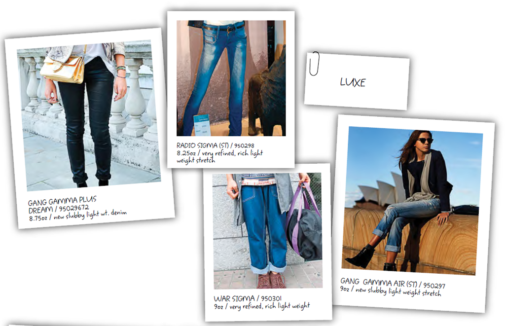 - Sensual Denims are bright indigo, open weave in Excel stretch. Other sensual denims are soft power stretches and new wax touch.